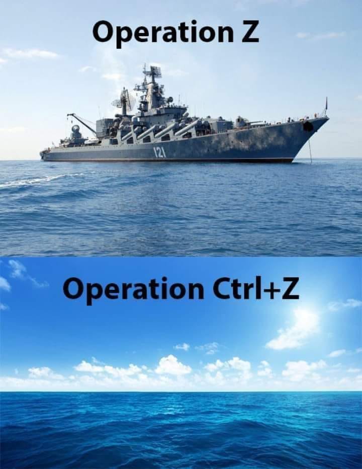 The most funny thing (to me) is that the flagship is gone...I just see Putin with a very red head, stumping his feet, having a temper tantrum. Maybe he could get a stroke or something <this man pulls out things in me, I would never thought off>. On the bad site....He is going to lash out, already started.....I'm holding my heart. Who is going to believe the story that the ship sunk, because of a spontaneous fire on board and at the same time be so very angry on Ukraine because of that...Very inconsistent....BS....I hope the Russian people get it now.
