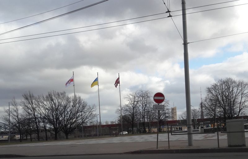 Here's some Ukraine flags I saw around town today when I went to get some bagels.