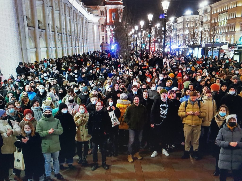NO TO WAR protests in 53 Russian cities have started. 1,700 arrested so far. This is in St. Petersburg on 2/24/22. Yes! Let the Russian people start marching by the thousands & thousands & thousands & the tyrant will fall, gold palace & all. This change can only come from within by the Russian people themselves.