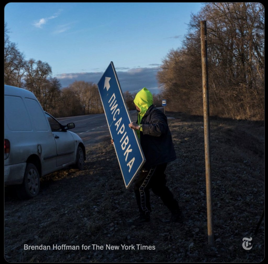 Road service employees are dismantling road signs across Ukraine in order to complicate navigation for the invading Russian troops. https://nyti.ms/35wjBTO