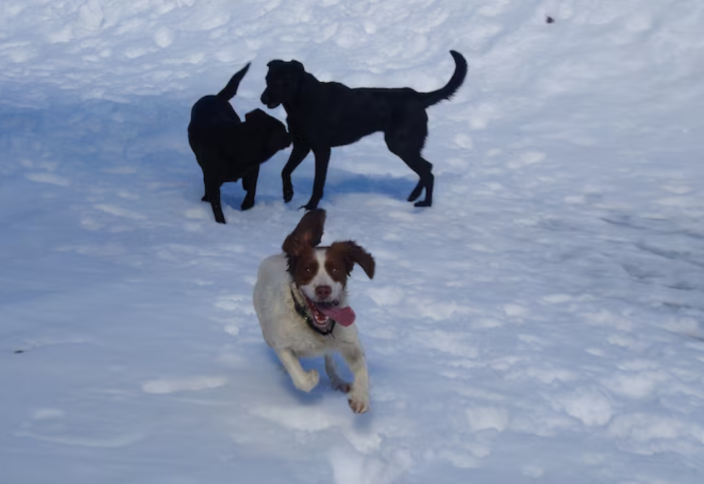 NSW Police cadaver dogs Toby, Rachey and Ree take a break in the snow.(Supplied: NSW Police )