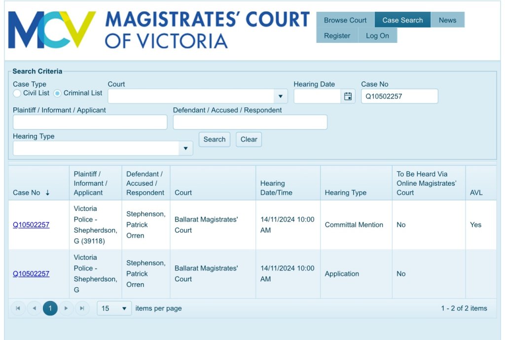 I think todays court stuff is about the traffic business, and it's most unlikely that he will make a personal appearance, it's unlikely the court would allow the travel up from Melbourne Remand centre, with all the security stuff involved, it most likely will be a ZOOM appearance, and probably not till after lunch.. on the other hand, it may be set aside because of the court appearance rostered for tomorrow, which, again, I think will be via ZOOM..