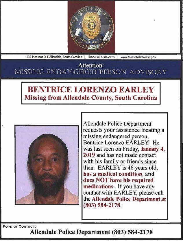 Bentrice Lorenzo Earley, 46, has been missing since Friday, Jan. 4th. The APD says he has a medical condition and does not have his required medications.