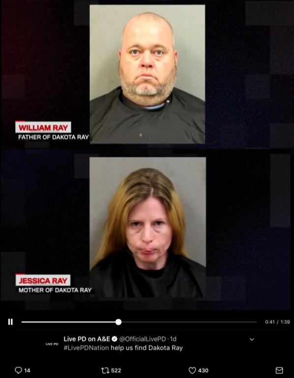 The Department of Social Services reported the child missing Tuesday after obtaining an ex parte order to have the child removed from the custody of Jessica Louise Ray and William Eugene Ray, her biological parents.