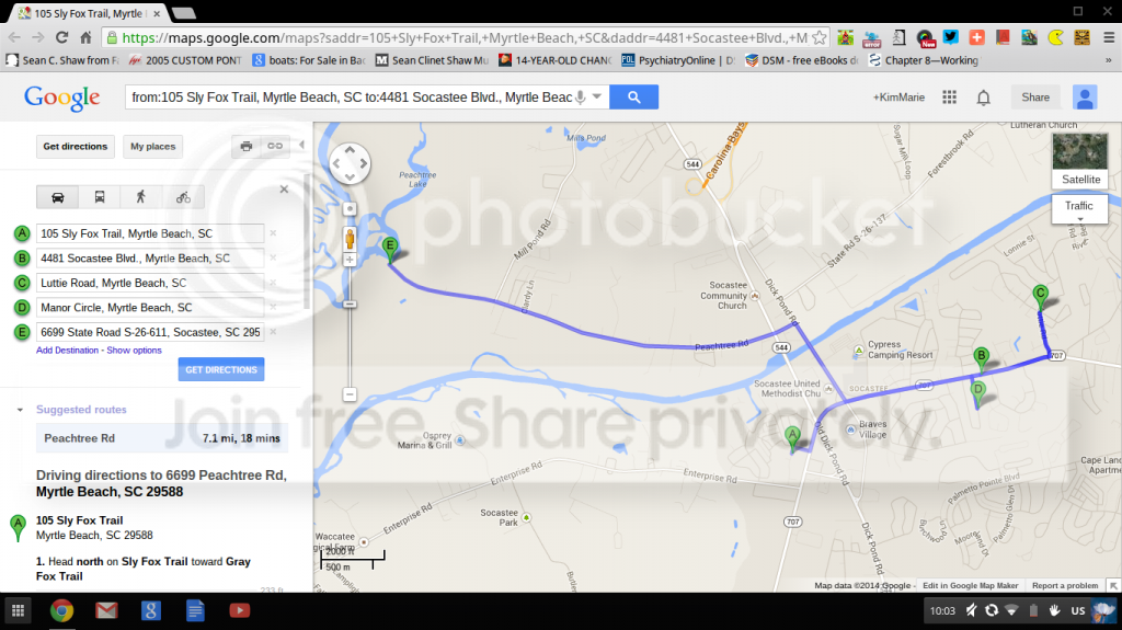 A) 105 Sly Fox Trail, Myrtle Beach, SC - presumably her dad's house