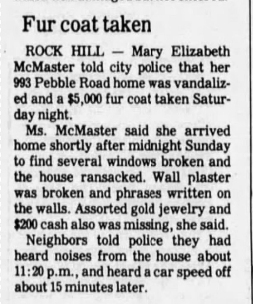 How did she came in possession of such an expensive coat? Did she work, came from a rich family, was she a mob girl?Wonder if this incident has any relation to Mayte’s disappearance. This was reported in Feb. 1981.