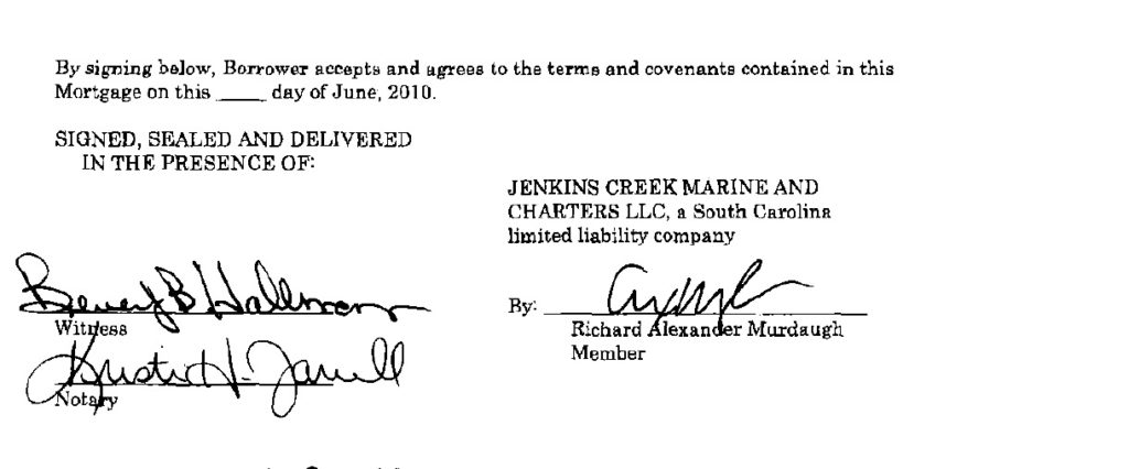 As with Crosby’s signature on the second mortgage, Murdaugh did not sign his mortgage document as a representing attorney or a registered agent. He signed it as a member of the limited liability corporation