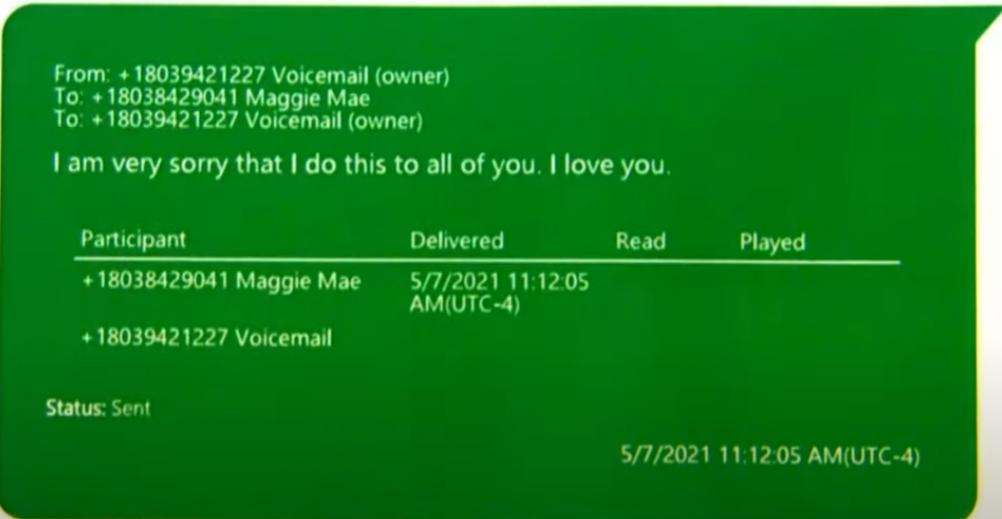 June 7, 2021. Marian says Maggie called her saying Alex called, wanted her to come home, bad prognosis for Mr. Randolph. She was in Edisto overseeing work done on the house. Marian says she encouraged Maggie to go to Moselle because Alex was very close to his dad, and it was the right thing to do to be with him.