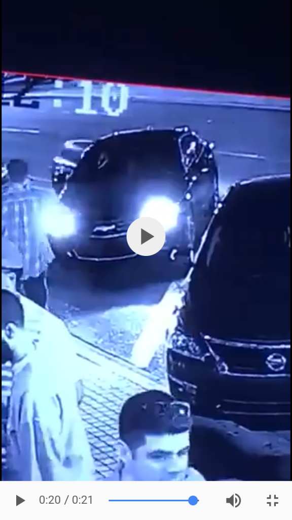 In my opinion, I don't think the face in the still frame is Sami. She is in the back. As the front passenger does a hair flip with her right hand, Sami is simultaneously closing the car door with what would have probably been her right hand. It is impossible, I believe, for these two things to happen at the same time. The image is of somebody in the front seat, otherwise the glare of the light on the face would not have been visible. In full speed it seems more obvious to me. It is just a coincidence he is riding around the very next night at 3AM in the same area with a female passenger while there is blood all over the inside of the car???Initially, pages ago, I thought there was a face in the passenger seat. But as I went over it over and over I believe I was seeing the shadow of the right shoulder of the passenger seat with the yellowish light from the street light, and a shadow from the door pillar.