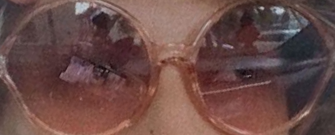 Also, look at the reflection in her sunglasses and zoom in. Is that someone walking in front of her car? Is that what she’s watching? Hard to tell, I don’t have any kind of software to enhance that.