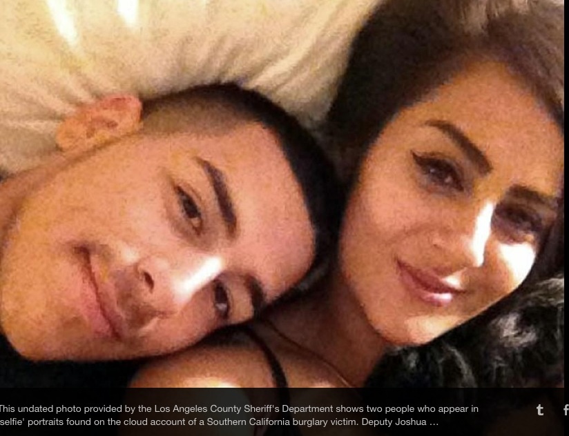 LA County Sheriff's Office says someone has uploaded this selfie to a Santa Clarita burglary victim's cloud account - using a device stolen in the burglary.