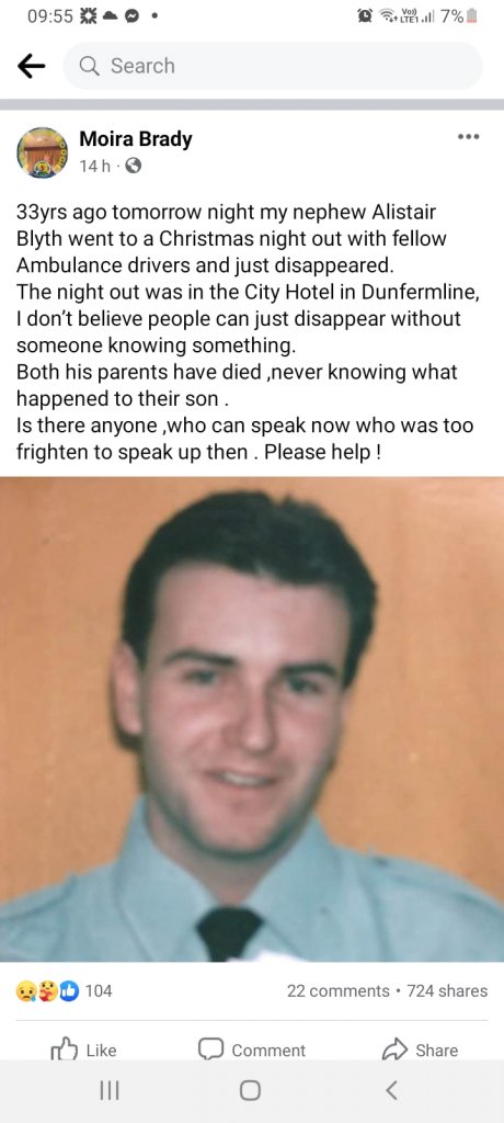 It’s still a Major Crime Investigation, he took no possessions other than his phone and house keys. There is no CCTV of him, other than when he was in a local pub on the night of the 1st. Police took him home approx 12.30am. They were the last to see him. Two searches carried out in Aug and Dec of local woodland. Police are indicating that they are winding down the search for him, they have no leads. They say suicide... were not convinced.