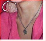 You can see this chain in a large percentage of her photos - the shamrock is hidden beneath her shirts due to her position in the photos... but you can see its the same chain. Course without shamrock showing its just speculation... but certainly appears to be a fave IMO too. Even one of the most publicized photos shows this chain & the charm almost peeking out...