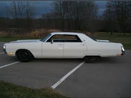 The car is described at a large, white, 4-door, possibly an early 70's model Chrysler New Yorker.