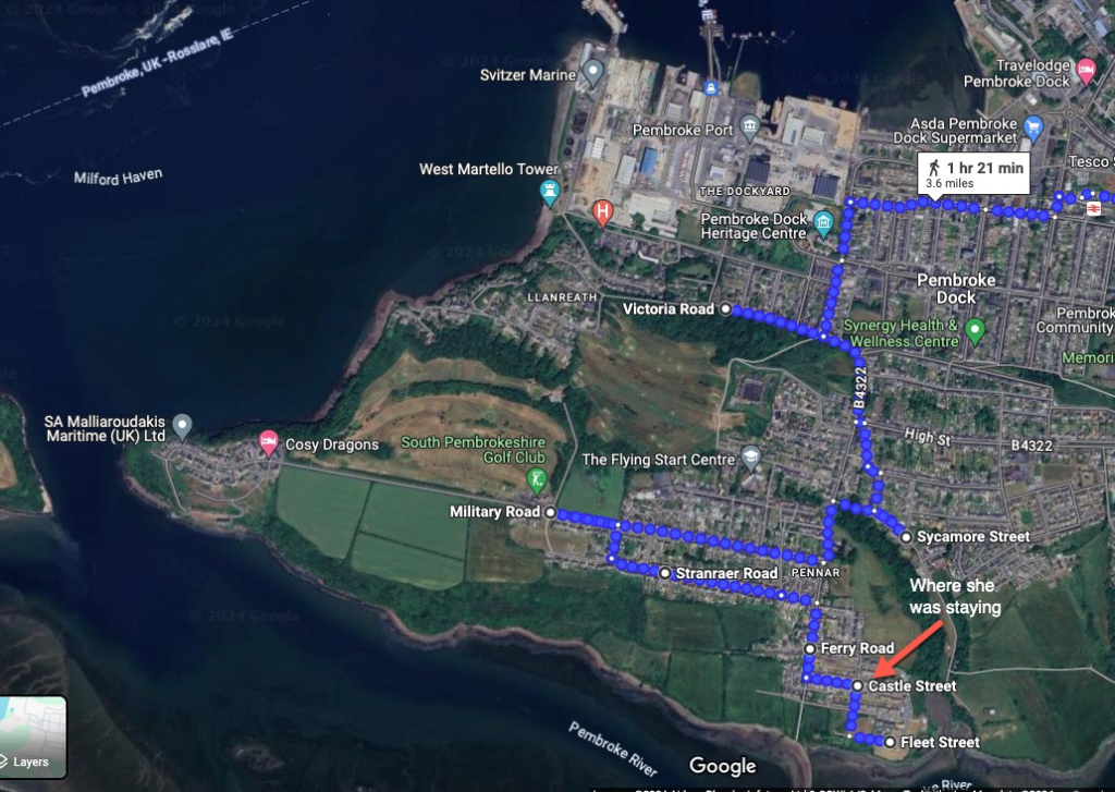 She was staying in the Castle Street area of Pennar but we don’t know what she was doing three days prior to her death.