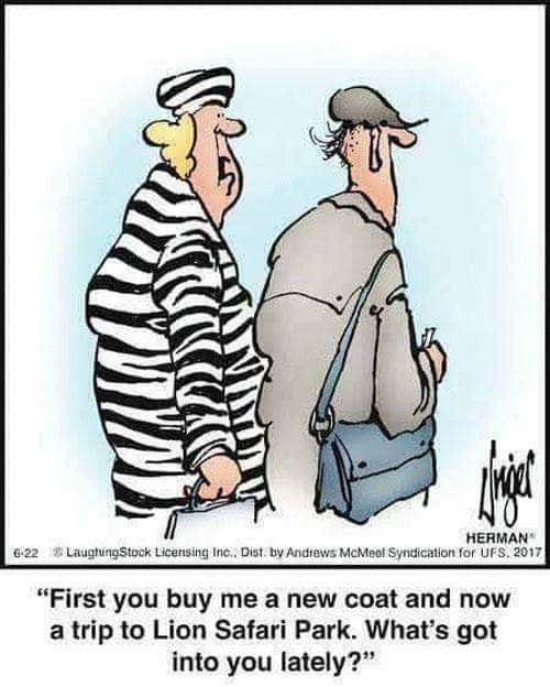 and I shall be gone from tomorrow thru Friday for my surgery on my left carotid artery - hopefully to be back home on Saturday.... so no funnies from me until I return!![]()