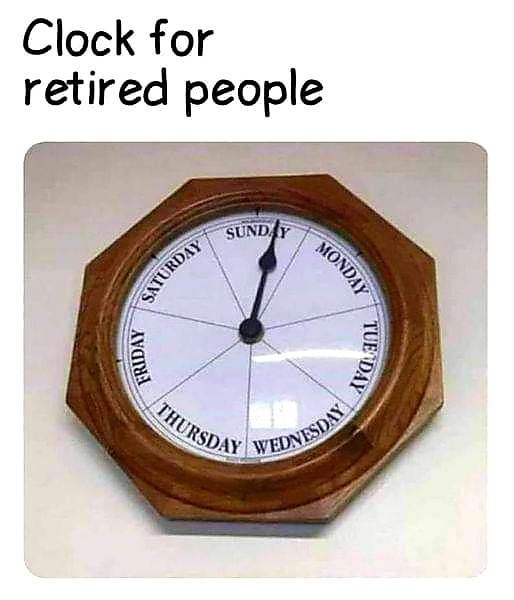 I need one too and I'm not retired yet, but maybe this is a sign that I should beI need one of these!!! Just yesterday I was trying to figure out if it was Monday or Tuesday. I kid you not! LOL I had to check my computer clock to clear it up for me.![]()