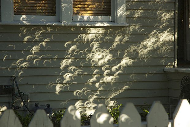 I saw someone doing an experiment to see the eclipse using a funnel and a cardboard box....