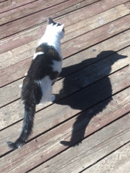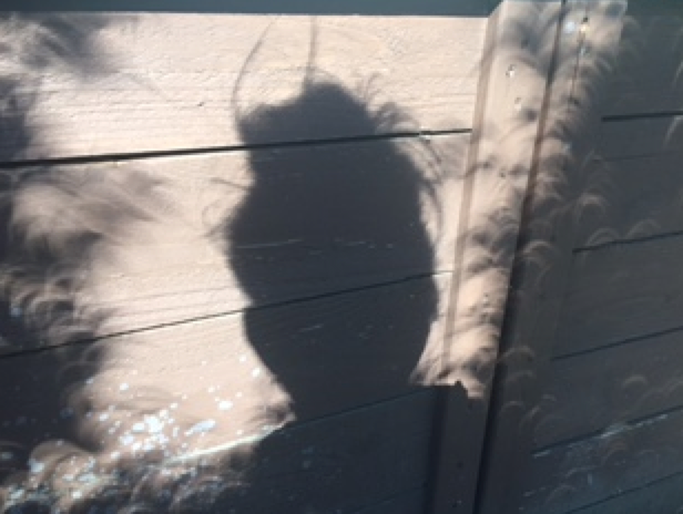 Well that was super, super weird. I thought it would be like a rapid nightfall but it was rather eerie. The light was like being on a stage with very detailed shadows. I got some cool shadow pictures of my messy hair sticking out and of the cat walking on the deck. The leaves made some amazing shadow patterns as well. When totality approached there was almost total silence (except for my kids!). All the usually noisy birds were quiet.