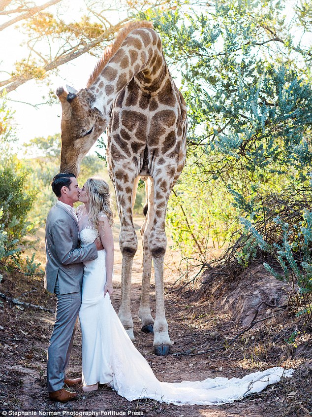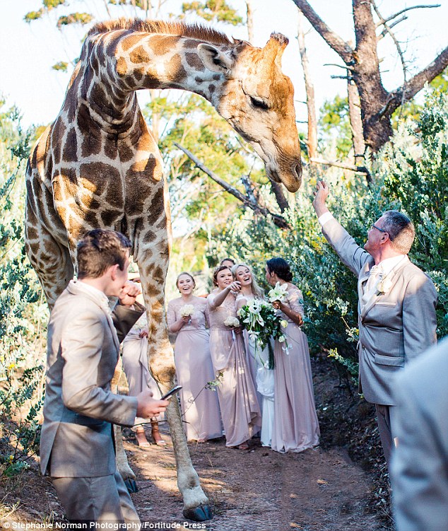 Couple have unexpected giraffe visit their wedding ceremony held in nature reserve | Daily Mail Online
