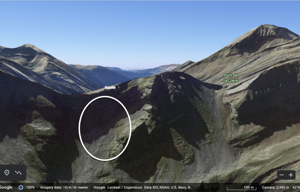 The southeast approach seems to be very unusual. It's crazy rocky. The Google earth photo is very misleading. I also don't think ED could have gotten up there from France.I still favour her coming up to the Port de Glere from France given Dan believed this from speaking to her and from her last text. I just wonder if she headed up the wrong way by mistake, looking at the wrong col. The path was likely part covered in snow approaching the Port de Glere according to the keeper of the Refuge of Venasque*. If so, it was far easier to go wrong.