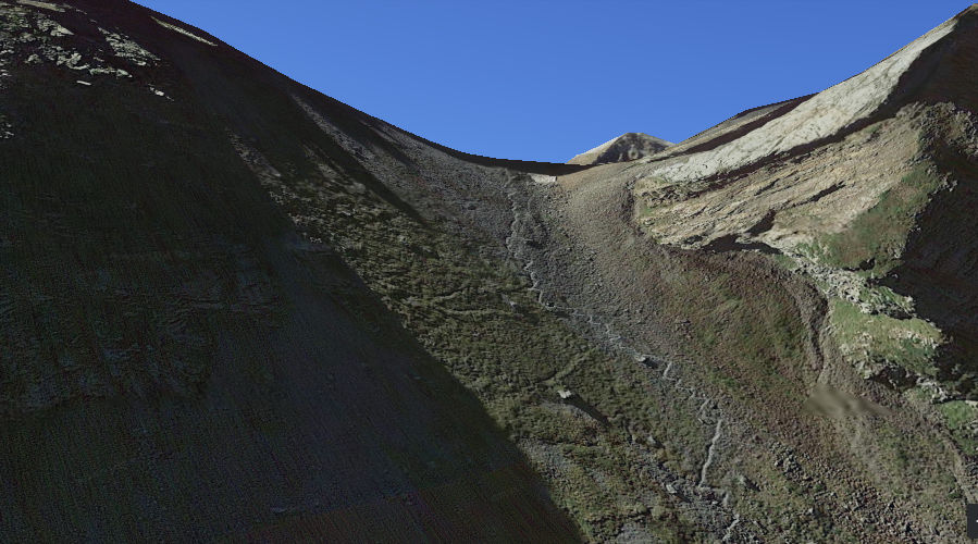 another view from the French side of the path leading up to the Port orientated so that fall line is down from the 'rocky peak' (at 2220m) to the rocky 'ledge' approx 15m below (or more like 20-30m as the crow flies/body falls) (ie consistent with discovery at 2200m unlike everything else in this thread..)