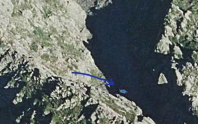 One thing that caught my eye is something at the bottom of where someone might fall if they went up the path from the south side by the small lake and then tried navigating up the peak. I can't tell what it is, and it could be snow or a boulder or something, but it's also where something sort of would naturally fall if they were on that ledge, and it's hidden by the landscape around it. I only mention this since it looks grey, and people said Esther's backpack was grey.