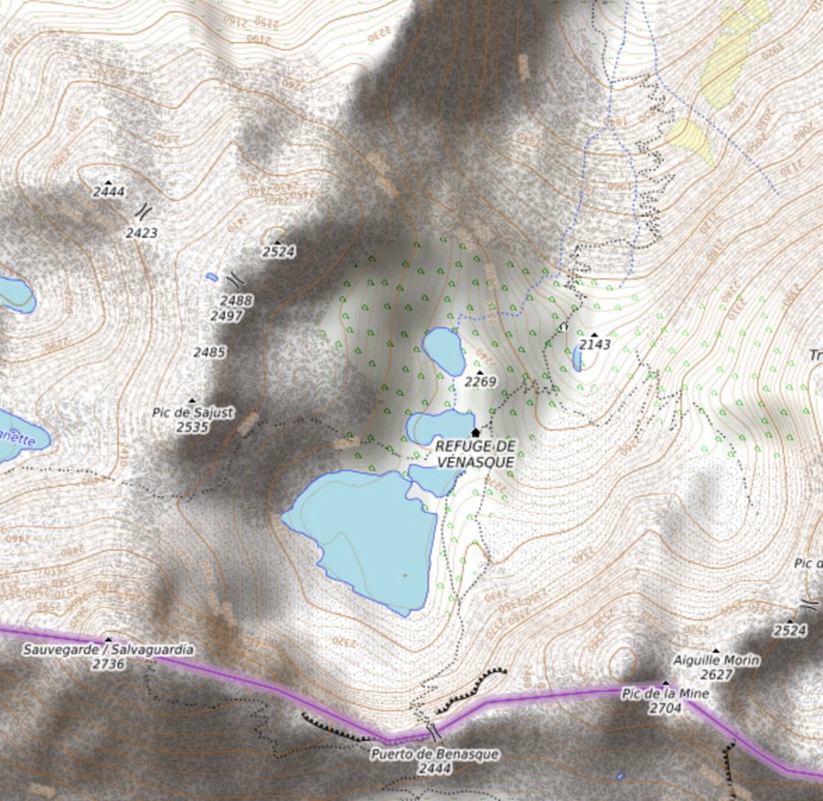 There's one part of the trail after passing the Port de Venasque where cables are available, but not everyone would use them.