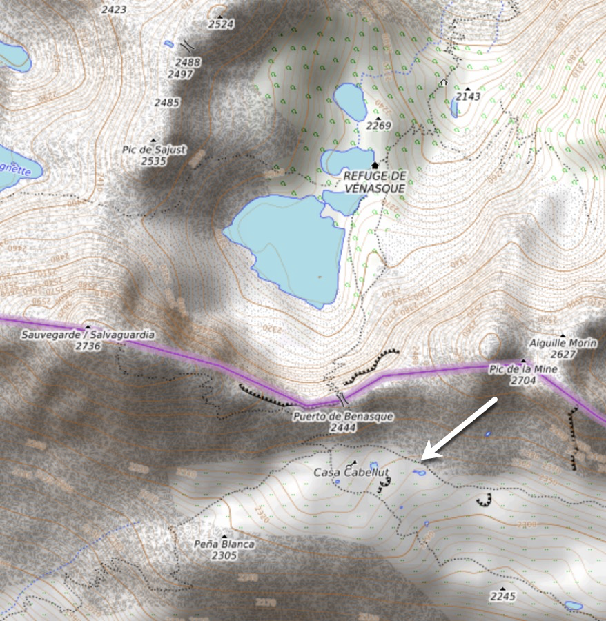 @otto, I like that added piece of information you identified - one does not need to go directly by the refuge de vanesque to get from port de vanesque to hospice de France. That might explain searcher dogs not picking up ED's scent at the refuge, although we really don't know why the LE have declared ED did not make it to / stay at the Refuge.