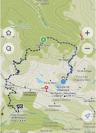 Snipped for focus.And perhaps that doesn't matter, because ED had a pattern of communicating her plans in real time, relying on frequent communication to do so. Perhaps she never told DC any more than what she planned to do that night (22/11) and the following day. But that route he describes dumps her at the Hotel Hospital du Banasque. And if our hiking time calculations are correct, that could have been the evening of 23/11 if ED got an early start to her route for that day. But who knows where she actually went?