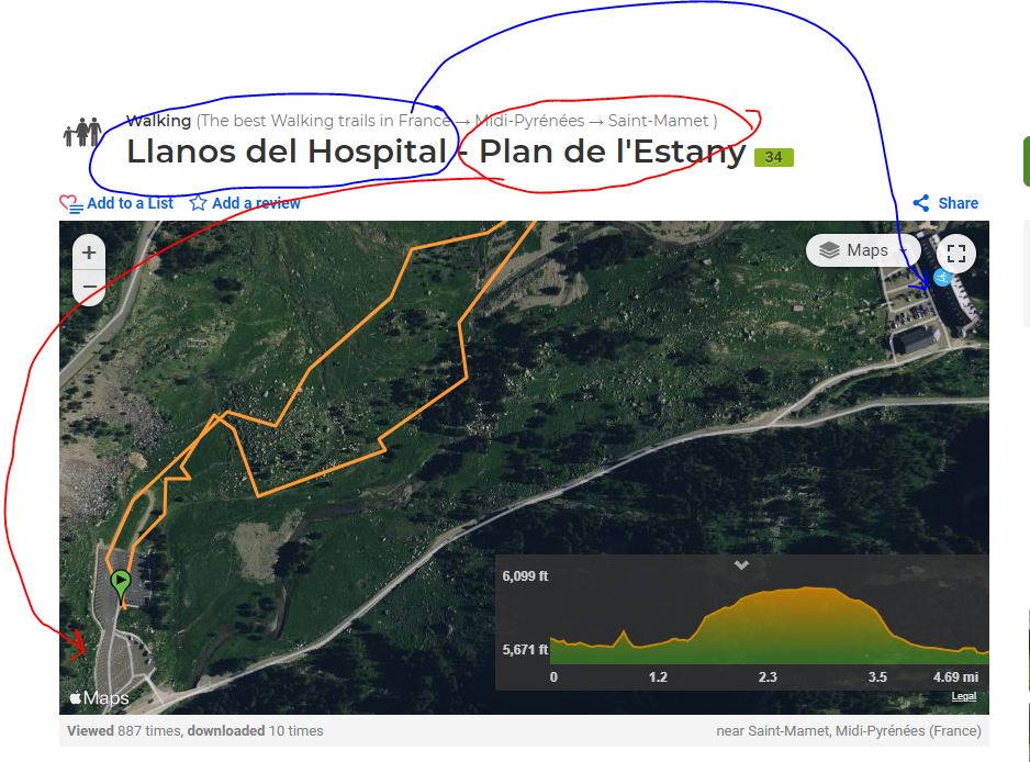 But aren’t Plan d’Estan and La Besurta nearer the trailhead than the Hosp is? I don’t get why she’d double back along the road to start from there, when she’d already driven past it to get where she wanted. What am I missing?