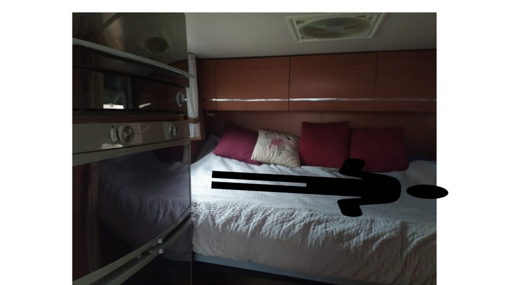 • First... here are pictures of ED in the motorhome (their current Fiat model) relaxing on the bed in the back (5), along with my "little man" image for reference