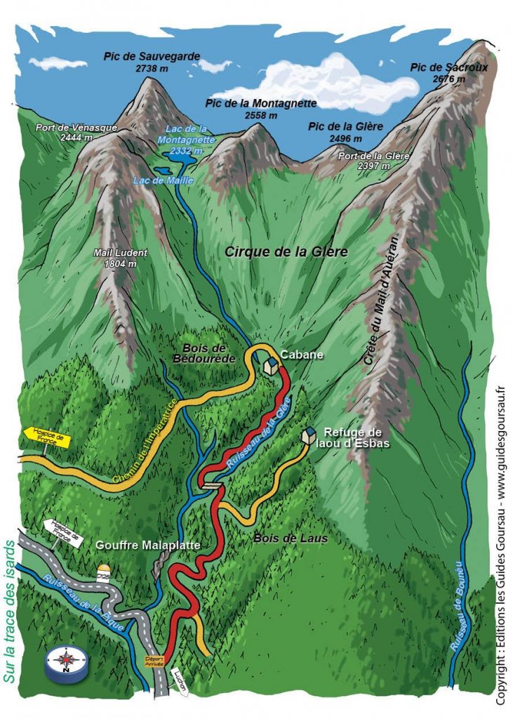 The trails seem to be a little off, since you can get from the Hospice to the Port de la Glère via the Chemin de l'Impératrice, but I don't know if I'd want to be taking any kind of shortcut from the Refuge de V unless I had wings.