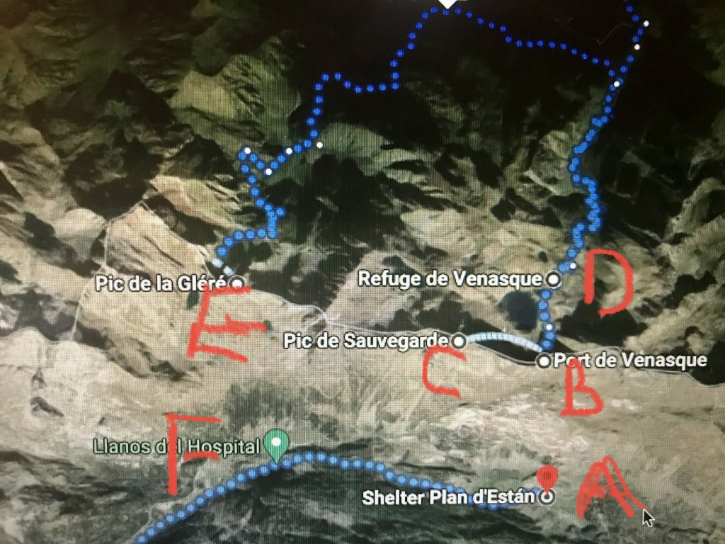 D - Refuge de Venasque where Esther was planning to stay.