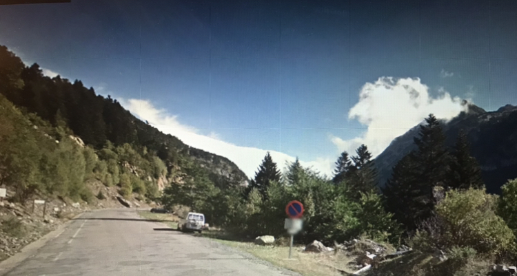 Searching the local mountains I spotted Agujas de Perramo is 2550m on the north side of the valley up from Benasque (less far than Sauvegarde) and I think it was up this that she got caught out by poor weather and came down with someone and got a lift back to Benasque.
