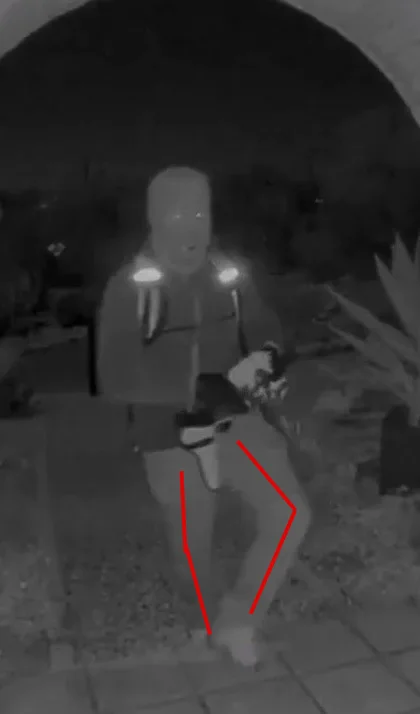 Just my thoughts here, but I keep seeing posts about little feet, big head, very large hands… I think the images are distorted by the lens creating the sense that anything close to the camera appears huge (hands with “boxing gloves”), and that which is farther away appears relatively smaller (tapered legs to smallish feet). When I look at him as he is approaching the porch he appears more proportional. Hands and all. I’ve looked through random ring cam footage online and see the same distortion effect. I guess what I’m saying is, he’s been accused of wearing very bulky gloves or so many layers that he wouldn’t be able to manipulate or operate his firearm - discounting his preparedness, but that may not be true. JMO