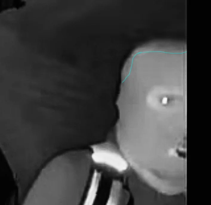 I believe the suspect is balding. Knit fabrics are made of thread. They're susceptible to showing any contrast of the item they're covering. Especially if they're pulled taut. I took screenshots from the FBI's Youtube videos. I used the limited photo editing features available on my phone to enhance the contrast. I believe the hairline is visible through the knit ski mask. It's fairly consistent throughout the footage. And I don't think the IR camera is picking up on the reduced reflection due to normal thickness of the fabric.