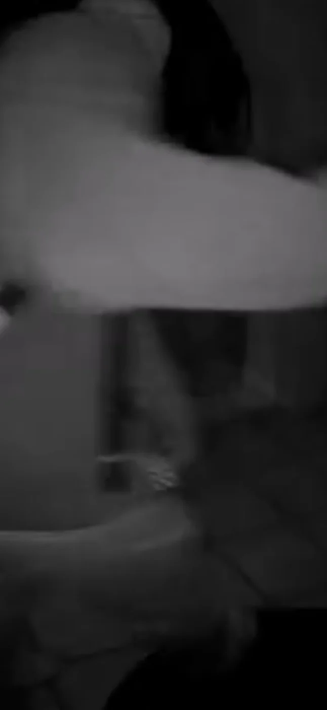 These screen grabs make me think that the bite light is underneath a thin face mask that’s covering the perp’s real mouth. When the light is off, we see the mouth of the face mask. When it’s on, it shines through the mask.