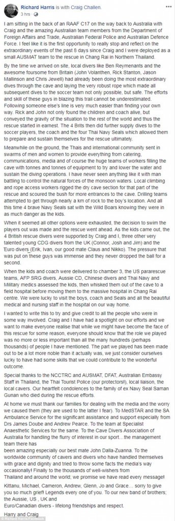 He also said that the initial hero in this entire mission is Vernon Unsworth, a British diver who lives there in MaeSai. He (reporter) said without Mr. Unsworth getting the ball (no pun intended this time) rolling, this rescue wouldn't have been possible.