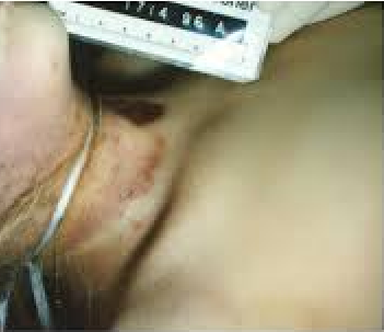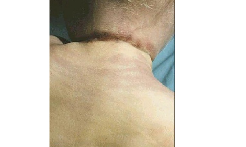 So it's a fold of skin, and when I loosely held it between my thumb and index finger, and then turned my head to the front, my fingers widened apart, and if I drew an imaginary line between my fingers it would be in the same angle as the rising base of the cone shaped mark on JonBenet's neck.
