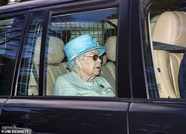 The Queen looks elegant in turquoise as she rides alone to Windsor church service | Daily Mail Online