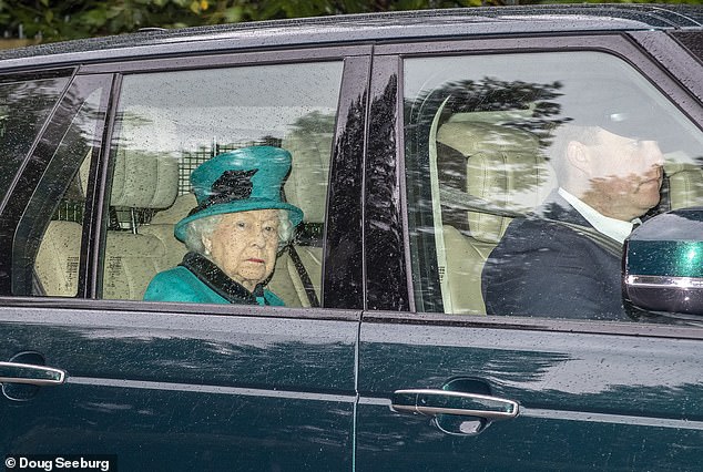 Queen in green! Her Majesty dons an emerald ensemble to attend a Sunday service in Windsor after returning from Balmoral