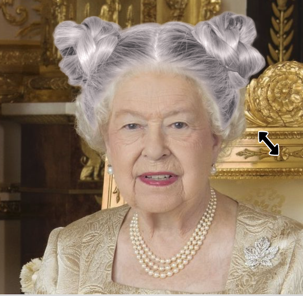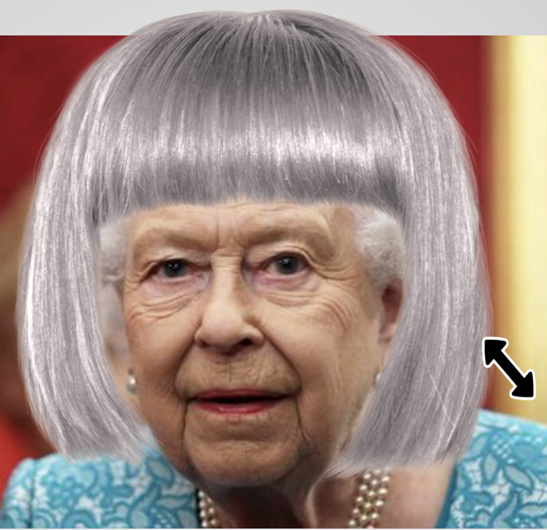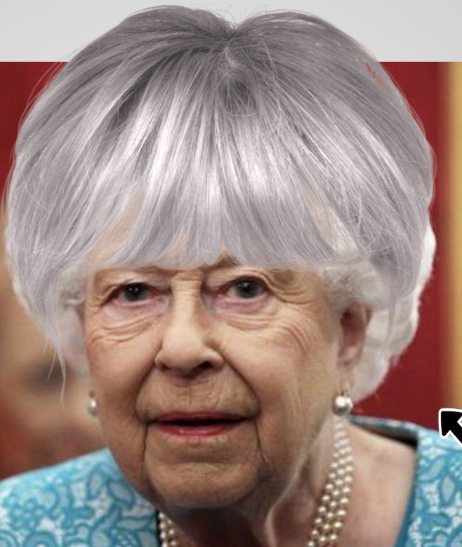 Haha, you just upload a photo to a hairstyle simulator and add different haircuts and colors. I'll try to find another simulator because the one I used is kind of limited. I probably need a better photo of the queen too.