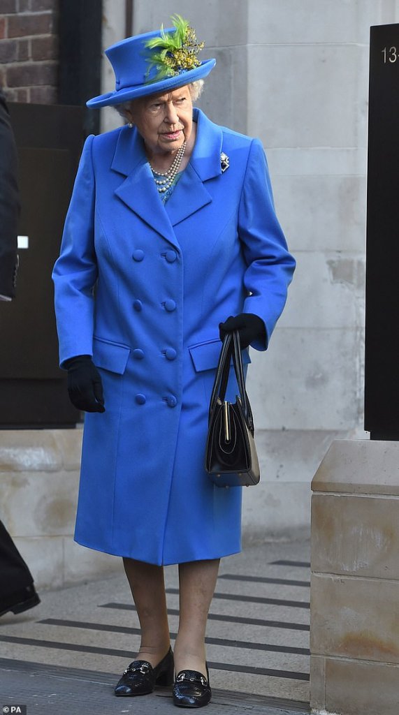 The Queen looks radiant in royal blue as she unveils plaque in London | Daily Mail Online
