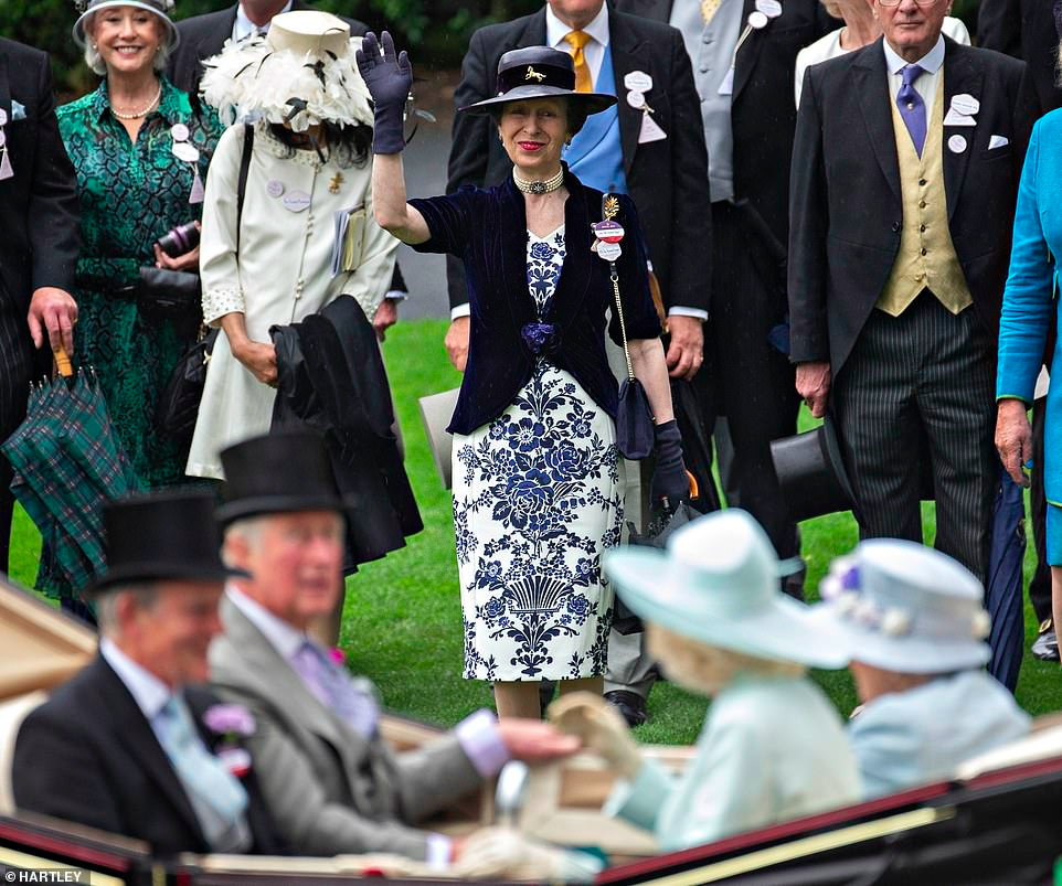Queen looks unimpressed as she grapples with her umbrella at Ascot | Daily Mail Online