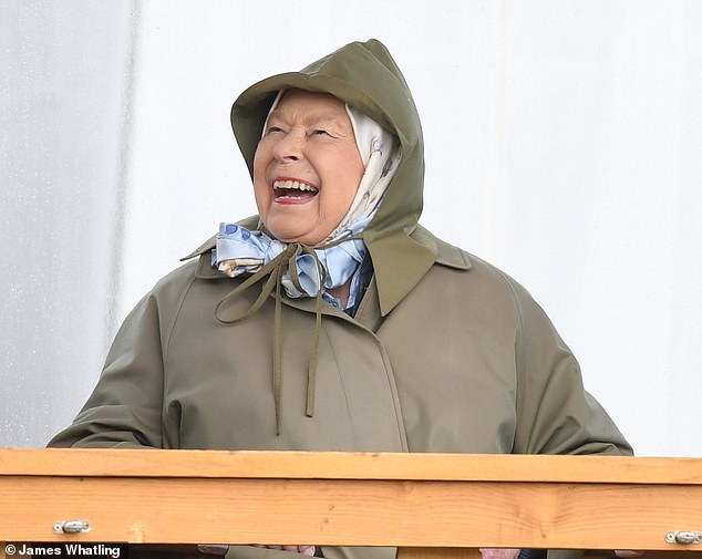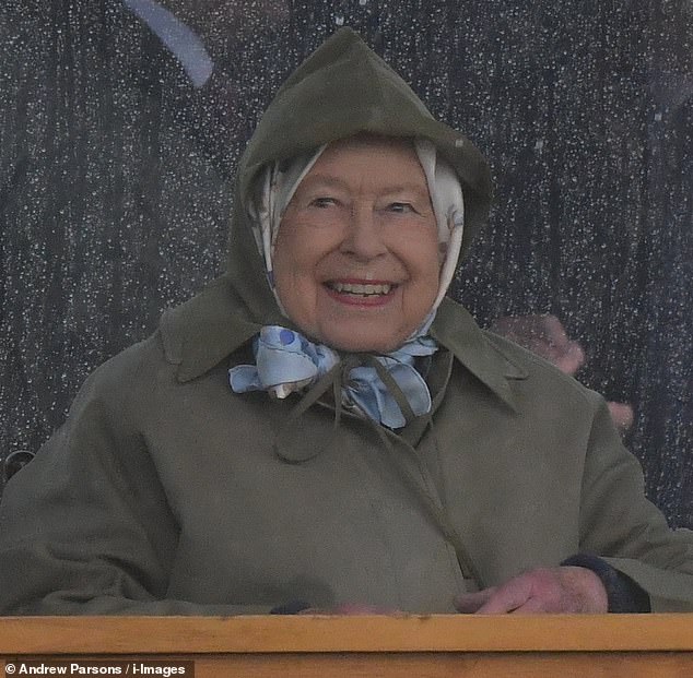 Something to celebrate, ma’am? Queen puts on a VERY animated display during a wet start to the Royal Windsor Horse Show - two days after becoming a great-grandmother again