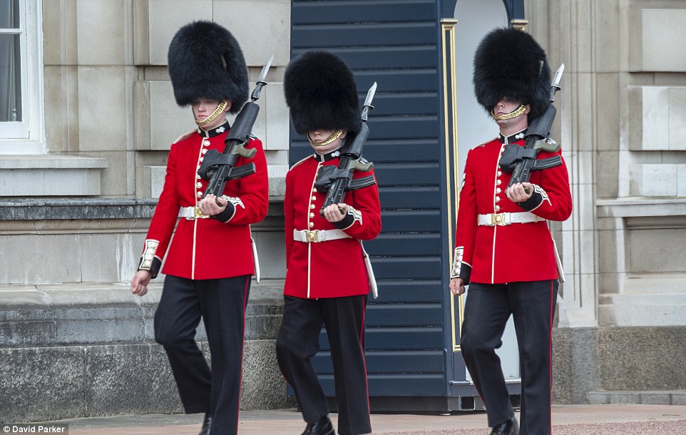 The King, followed by the Prince of Wales and the Duke of York, leaves Buckingham Palace on horseback to attend the Trooping the Colour ceremony at Horse Guards Parade.