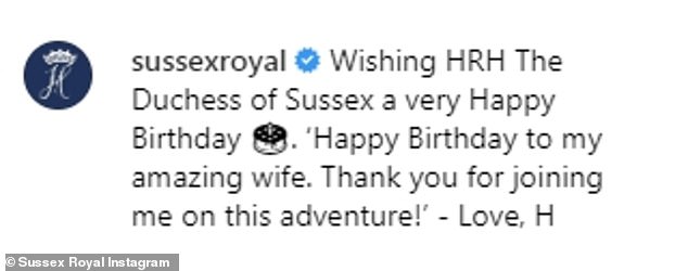 Both birthday wishes for Meghan address her by title, HRH Harry's a more formal version with informal closure.