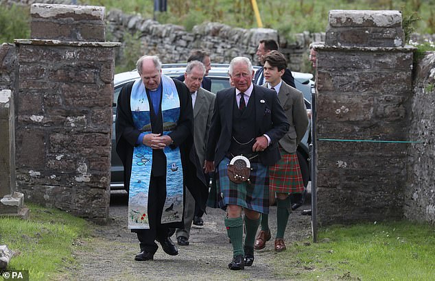 Prince Charles paid tribute to his Scottish hosts today as he attended church service in a kilt.