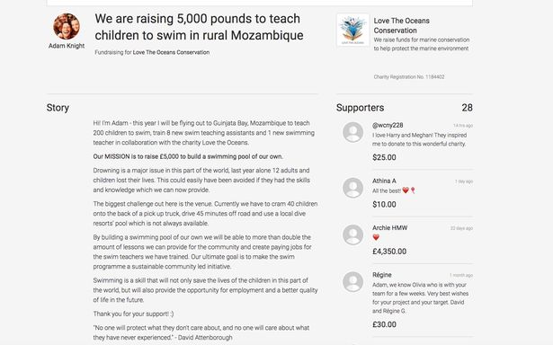 The fundraiser was set up to help residents in Guinjata Bay, Mozambique, learn how to swim.